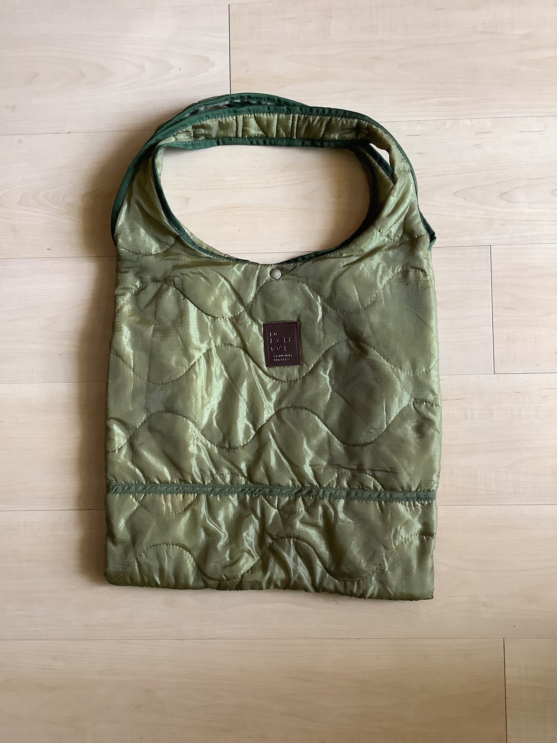 軍服の防寒用として使われてたライナー生地をリメイクしたバッグです。